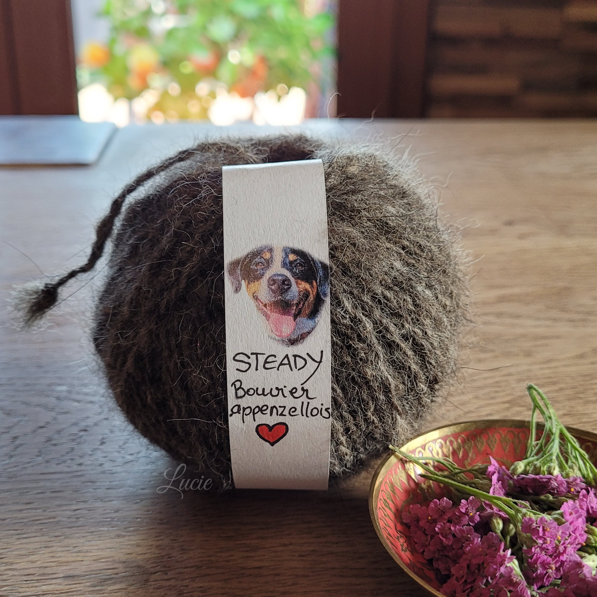 Steady, Bouvier appenzellois, 10 ans ♂️❤ Le sous -poil étant très court, il a été mélangé avec 50 % de laine de mouton.