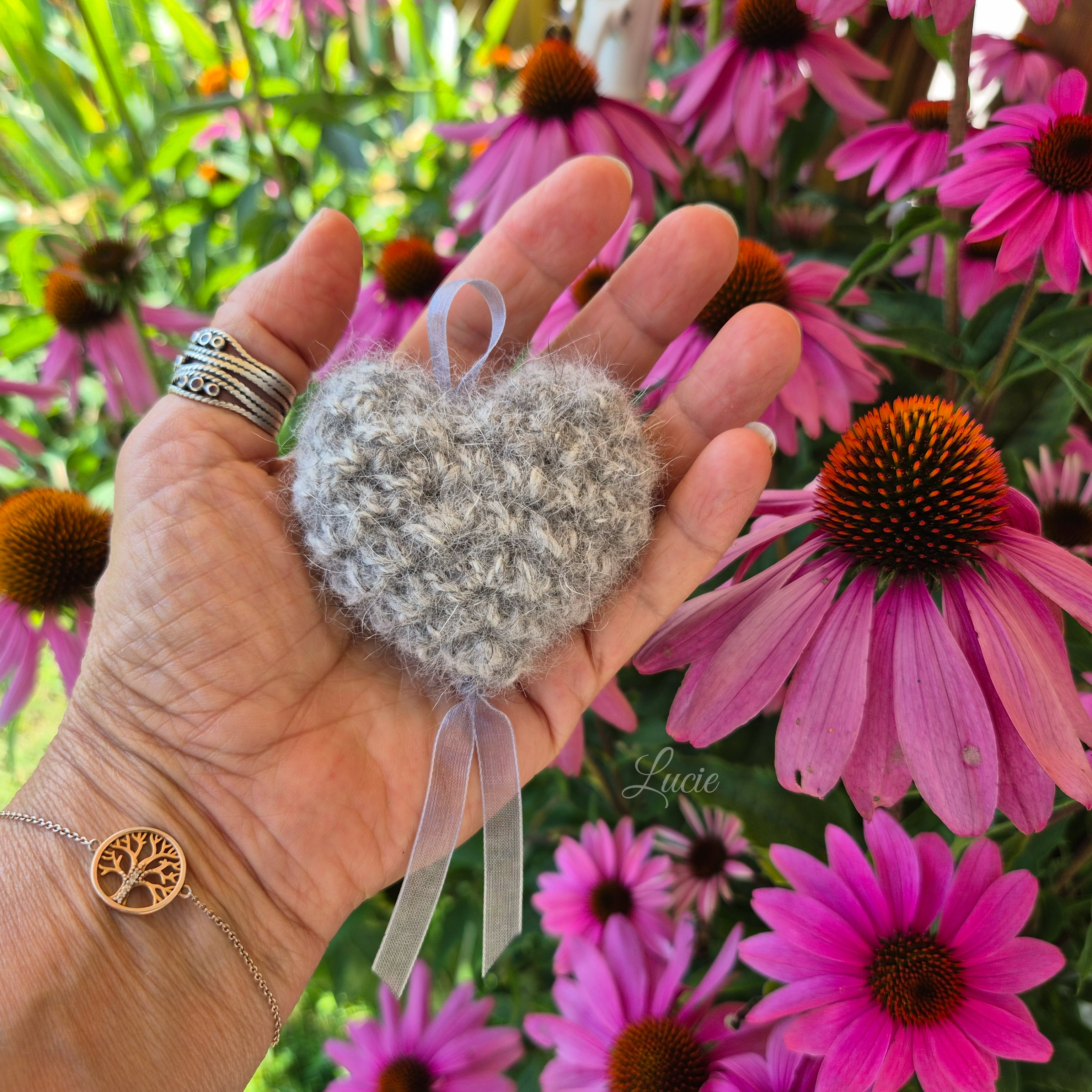 Un petit coeur rembourré avec la belle fourrure de Chanel, crocheté avec de la laine de Maya 🐾