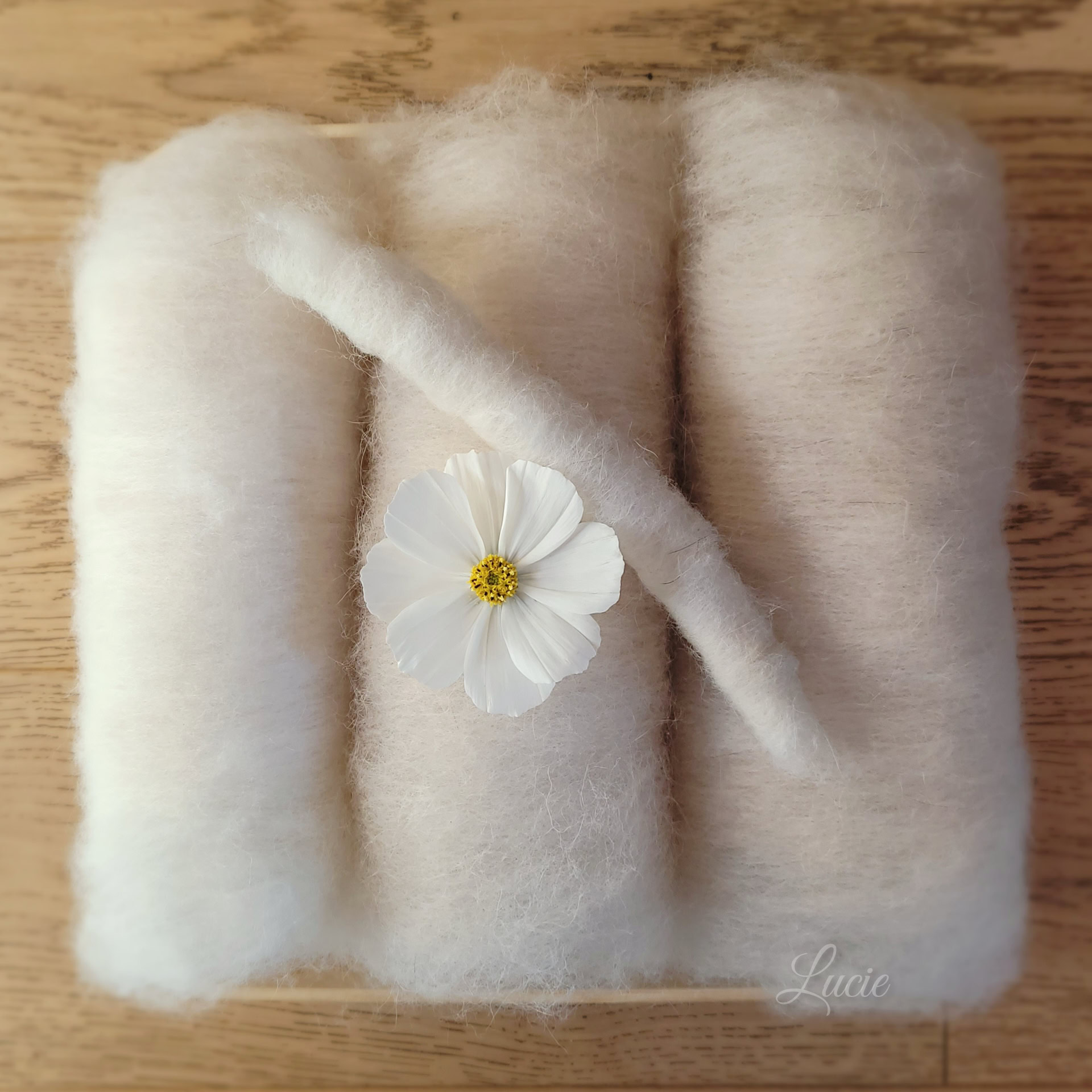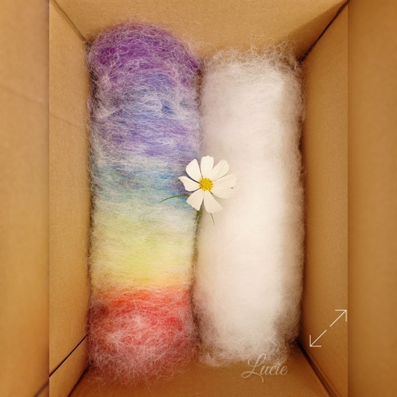 Pour une meilleure accroche et plus de souplesse, j'ai ajouté environ 20 % de laine de mérinos afin de faciliter le filage. 💙
