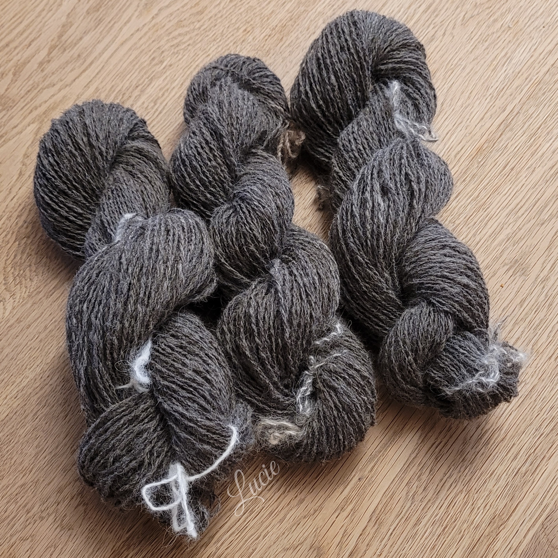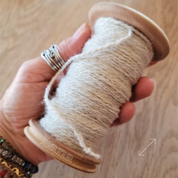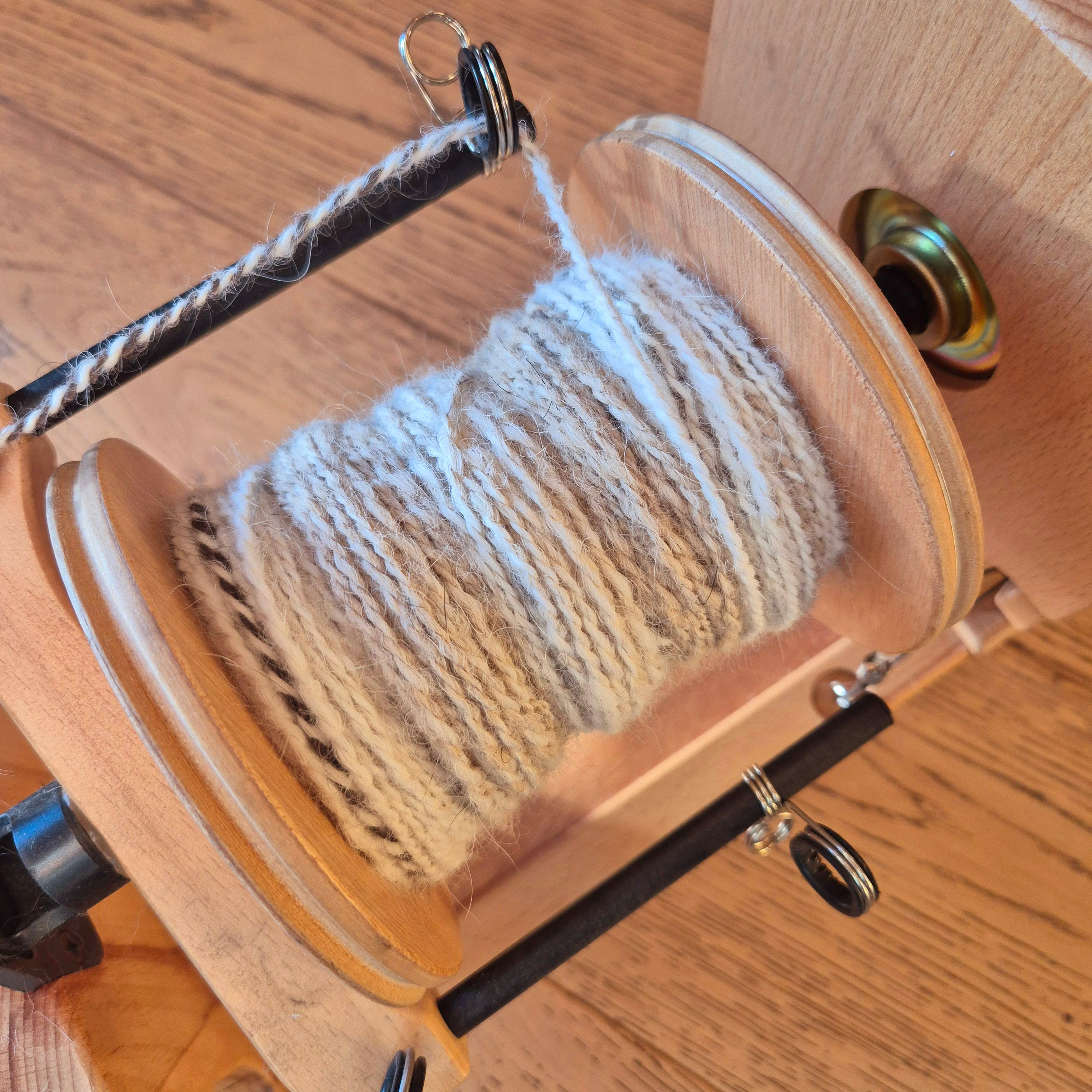 Son sous-poil étant assez court, je l'ai mélangé avec 20 % de laine de mérinos pour une meilleure accroche au filage. Le rendu de la laine est plus solide et moelleux.