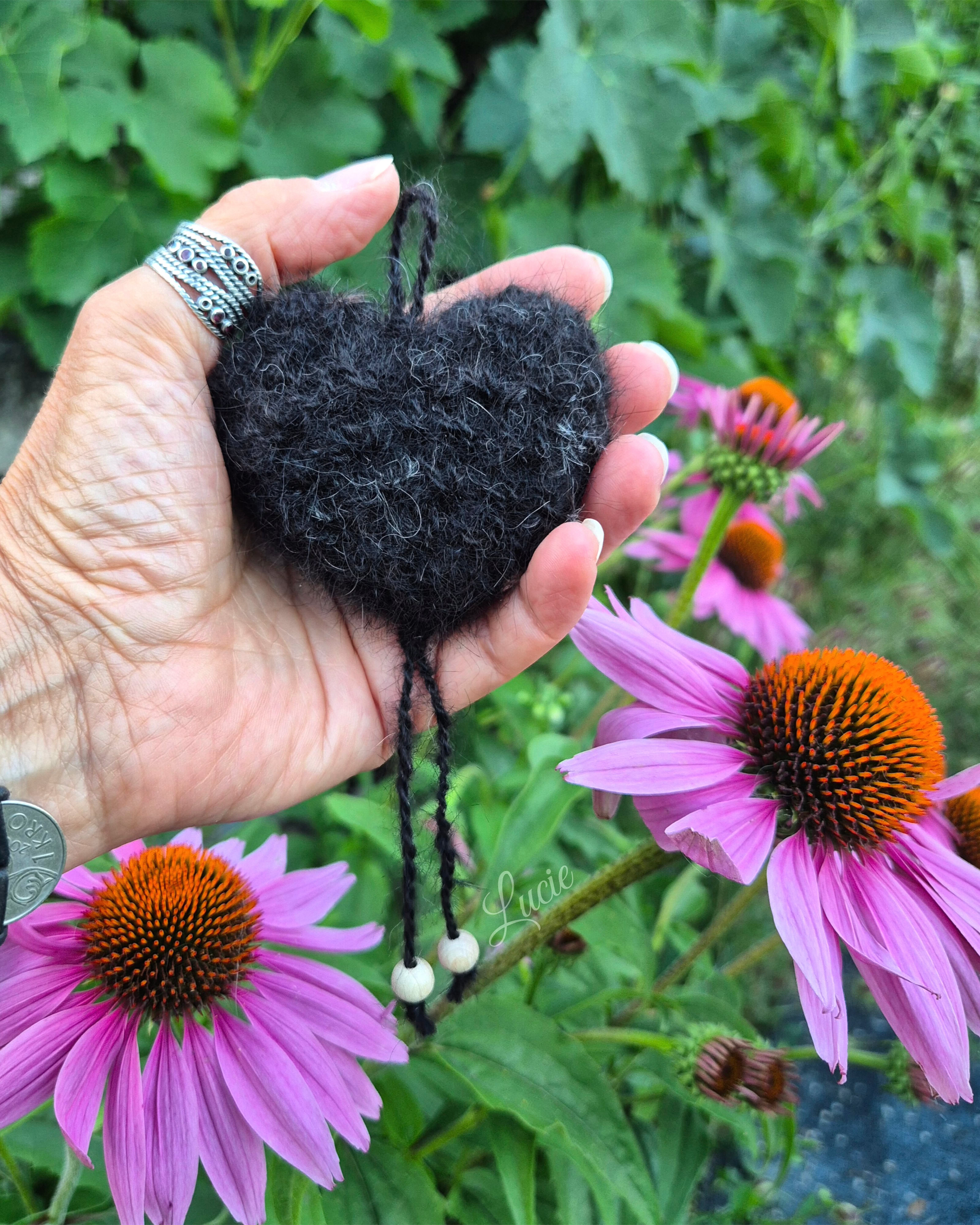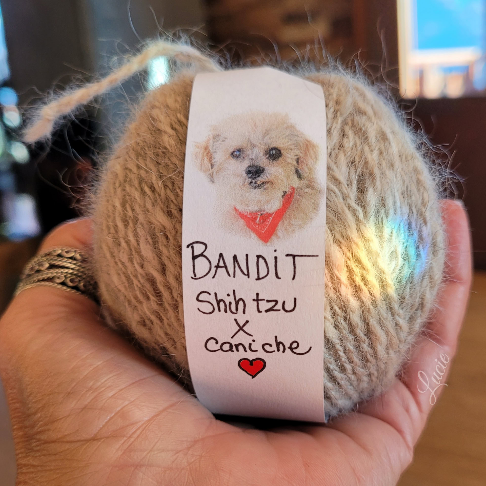 Pour Shylo, un Barbet, j'ai filé de la laine de mouton 🐑🇨🇭 avec laquelle j'ai crocheté un petit coeur et je l’ai rembourré avec son beau poil ondulée. Un idée originale pour garder un souvenir d'un compagnon dont le poil ne peut être filé. 🖤