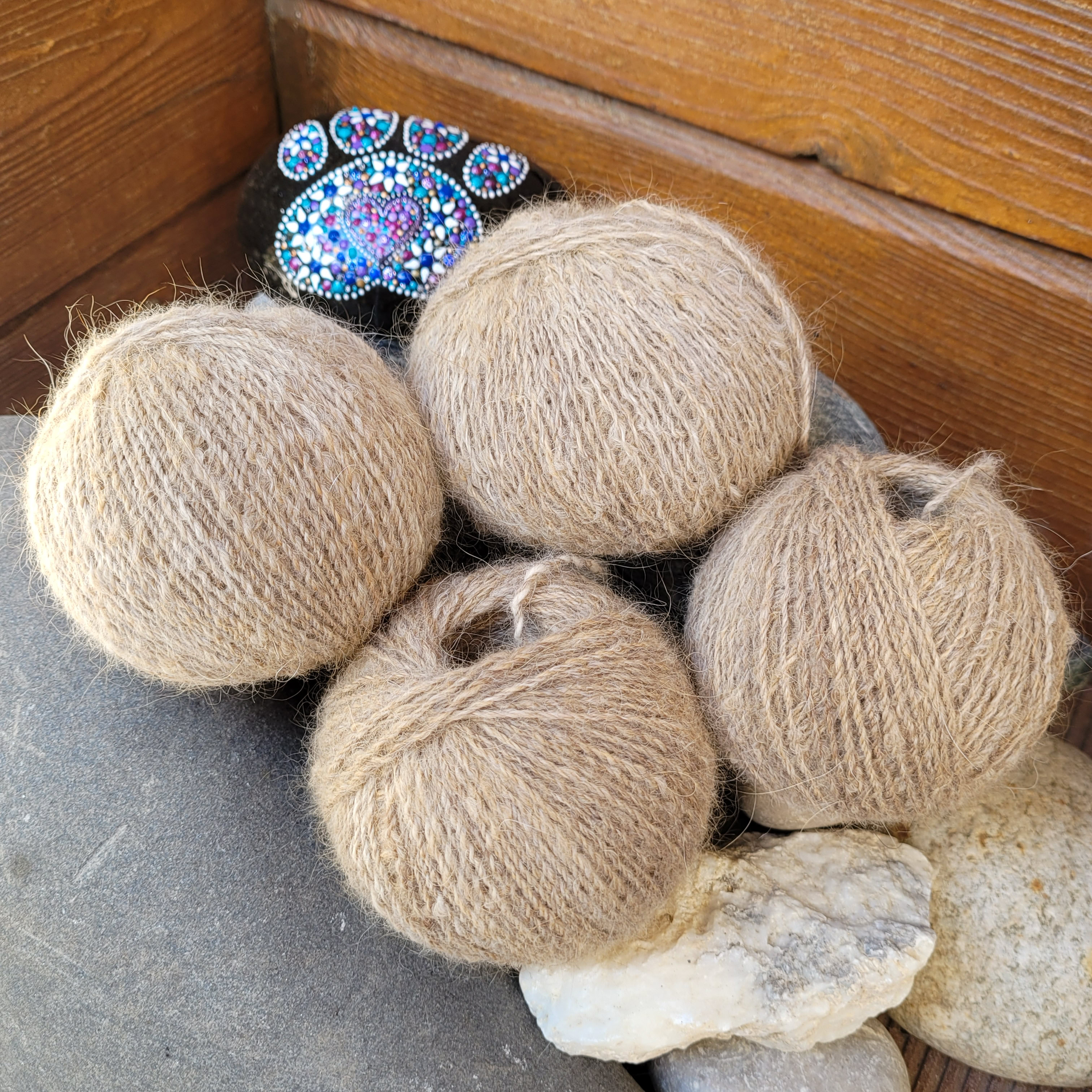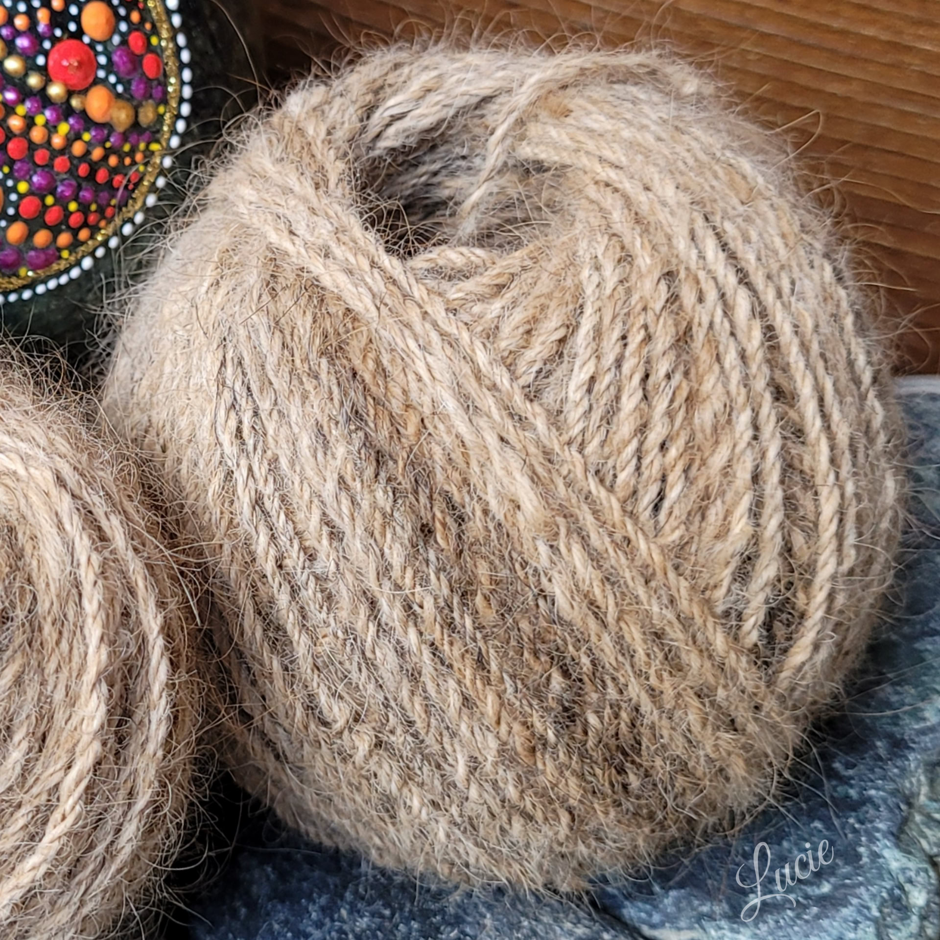 Thérèse a conservé durant plusieurs années le sous-poil de ses deux belles Léonberg aujourd'hui disparues, en espérant le faire filer un jour. Son rêve devient réalité.