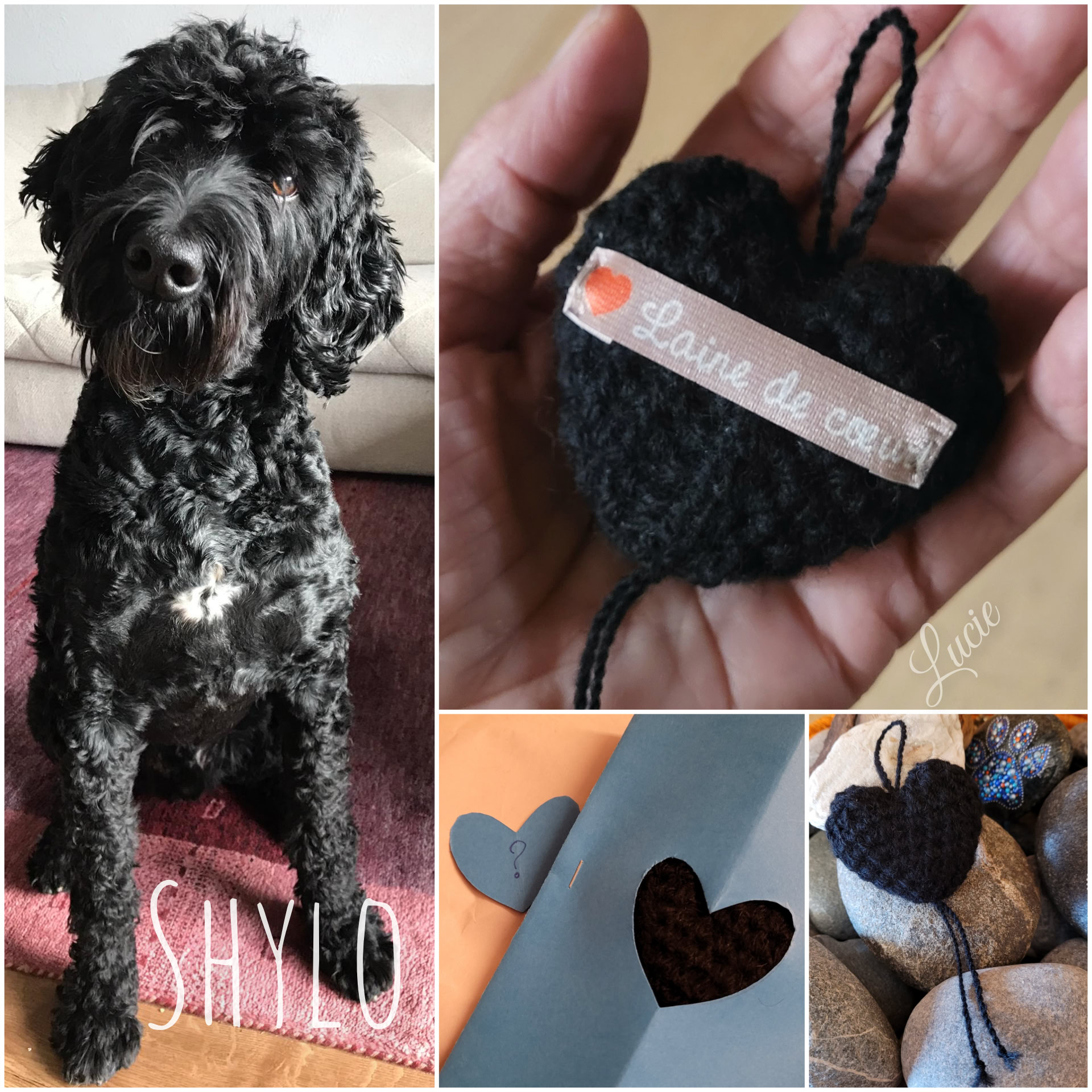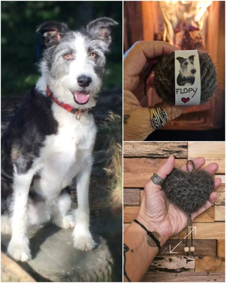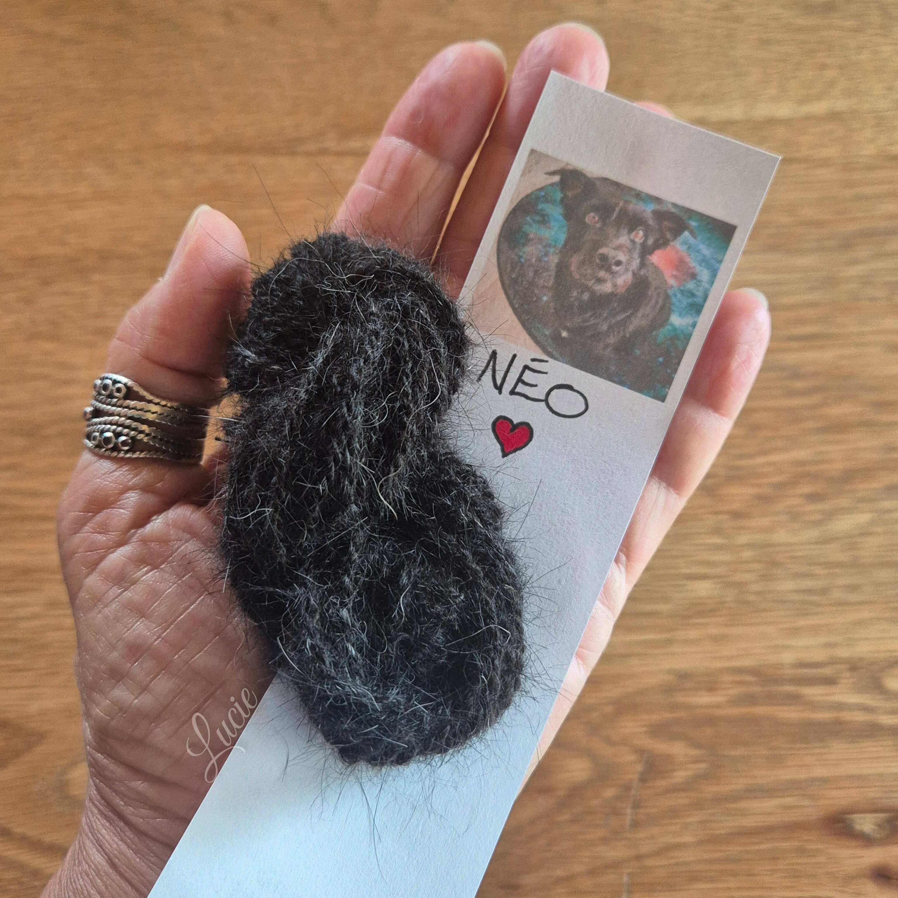 Pour Shylo, un Barbet, j'ai filé de la laine de mouton 🐑🇨🇭 avec laquelle j'ai crocheté un petit coeur et je l’ai rembourré avec son beau poil ondulée. Un idée originale pour garder un souvenir d'un compagnon dont le poil ne peut être filé. 🖤
