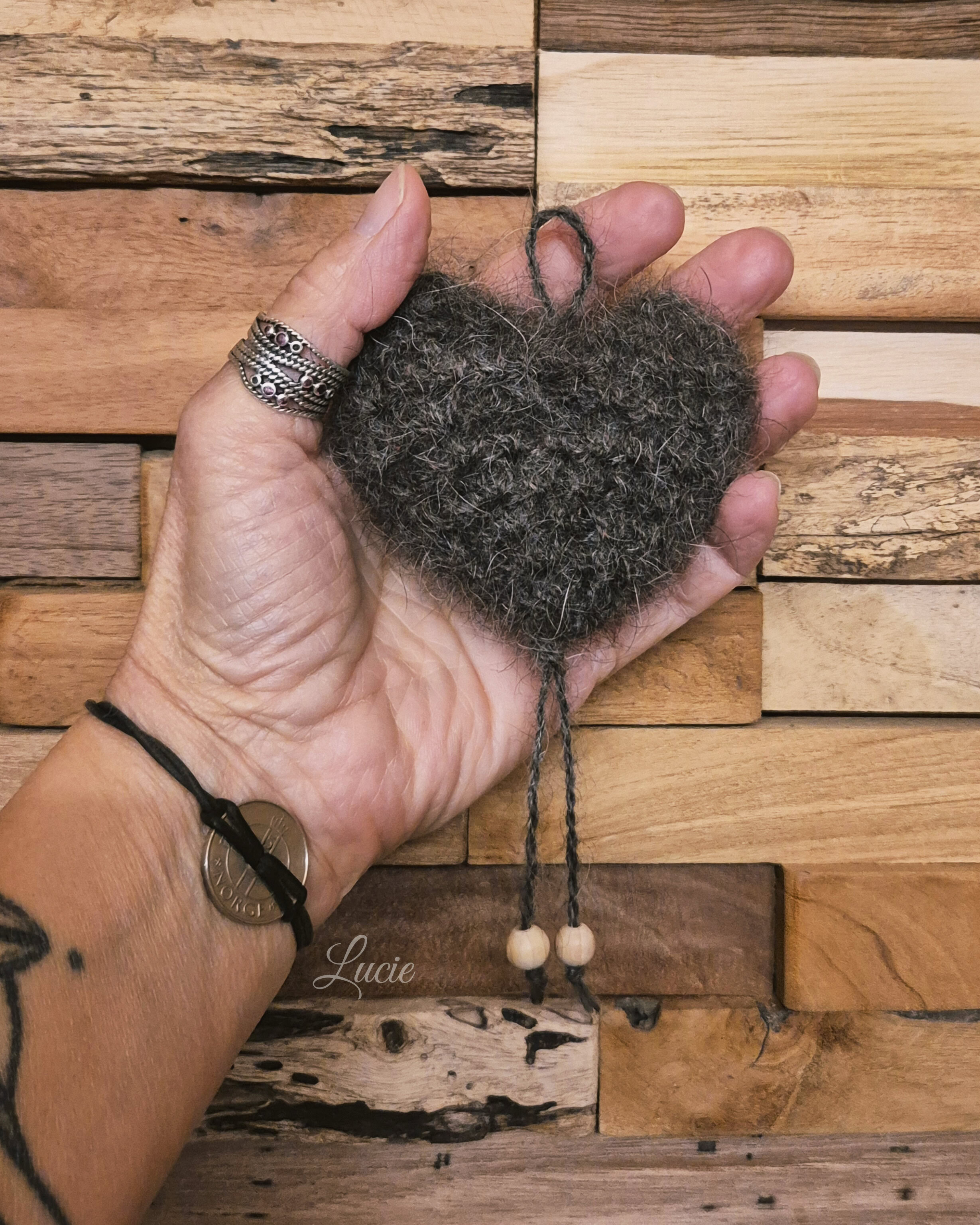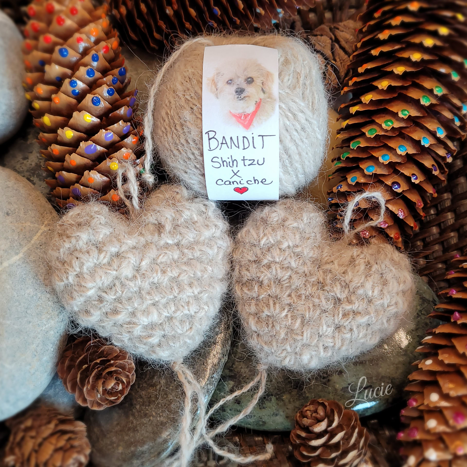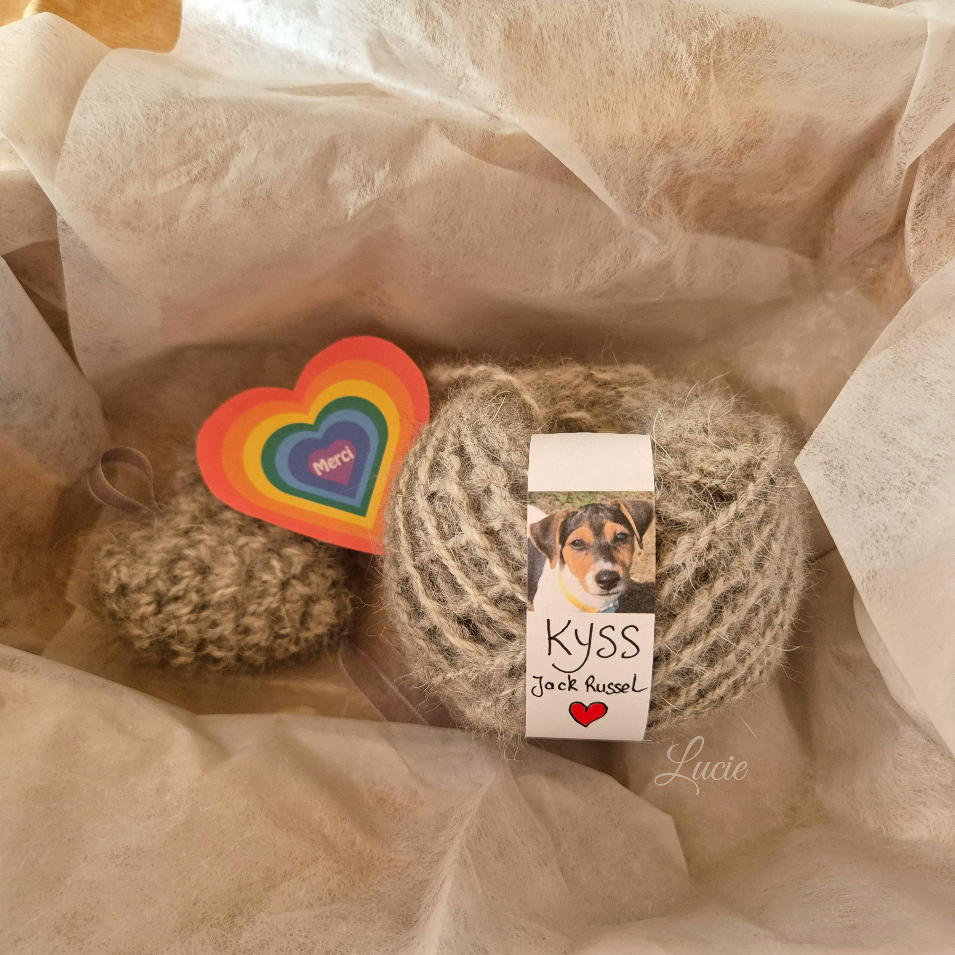 Pour Shylo, un Barbet, j'ai filé de la laine de mouton 🐑🇨🇭 avec laquelle j'ai crocheté un petit coeur et je l’ai rembourré avec son beau poil ondulée. Un idée originale pour garder un souvenir d'un compagnon dont le poil ne peut être filé. 🖤