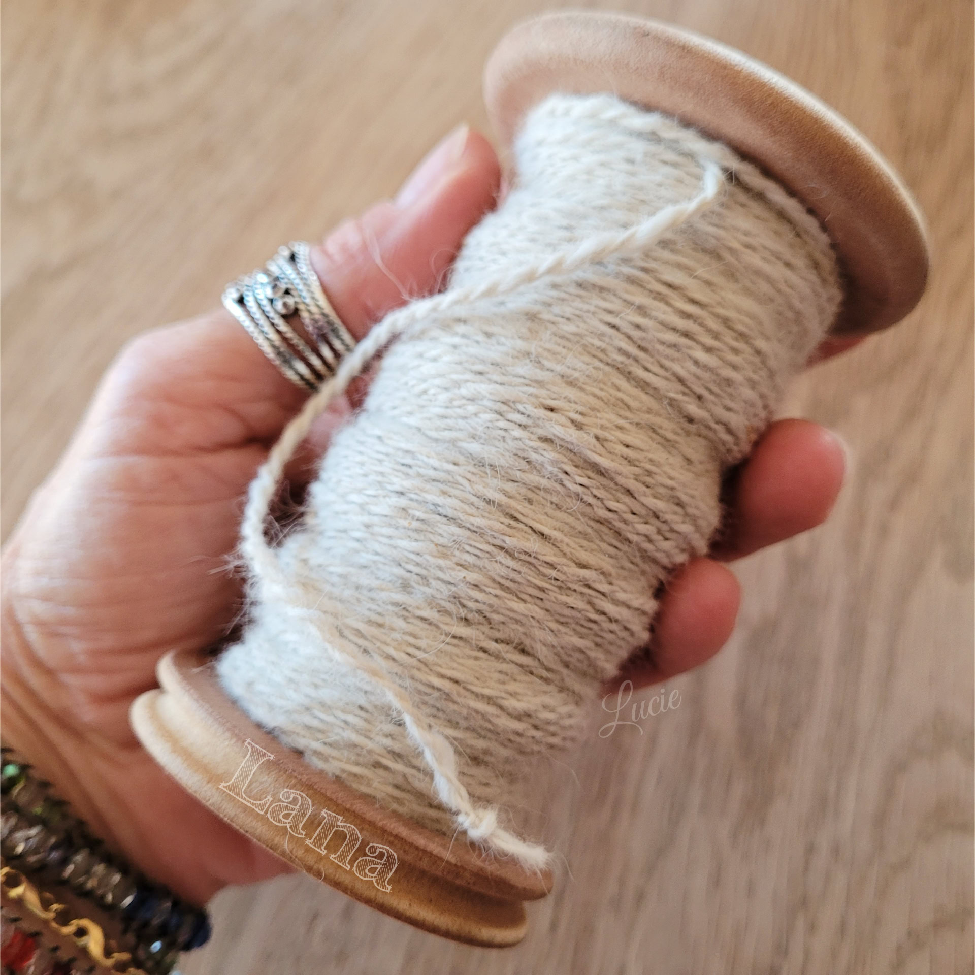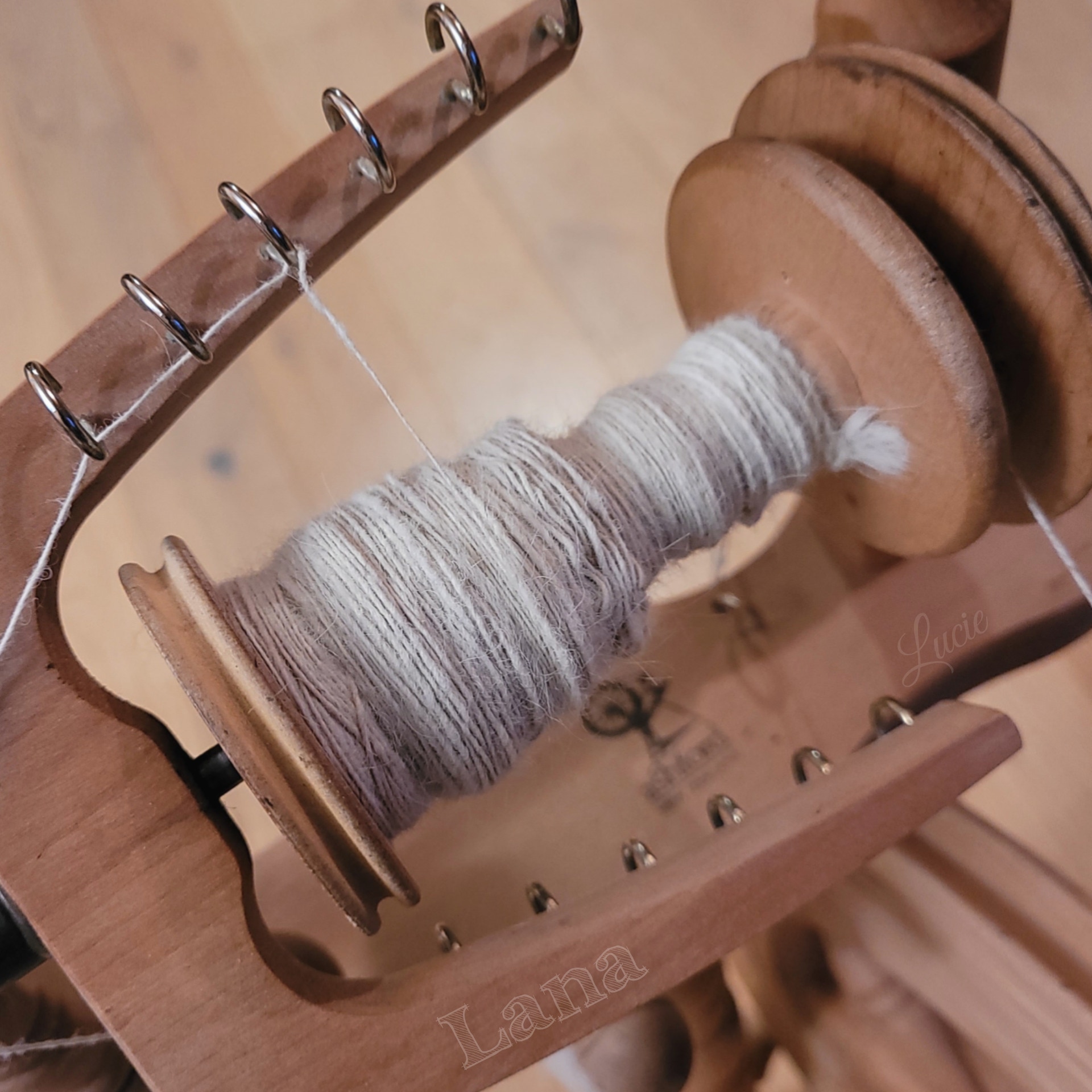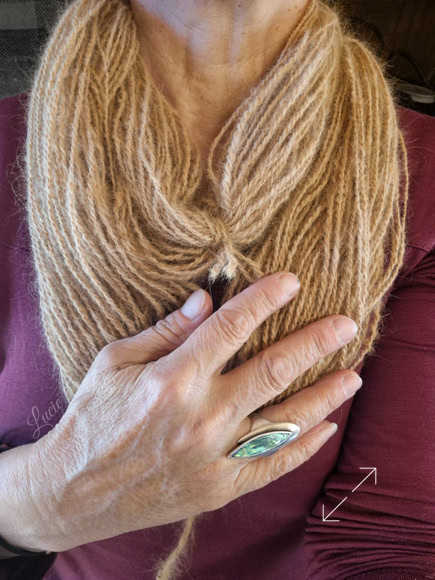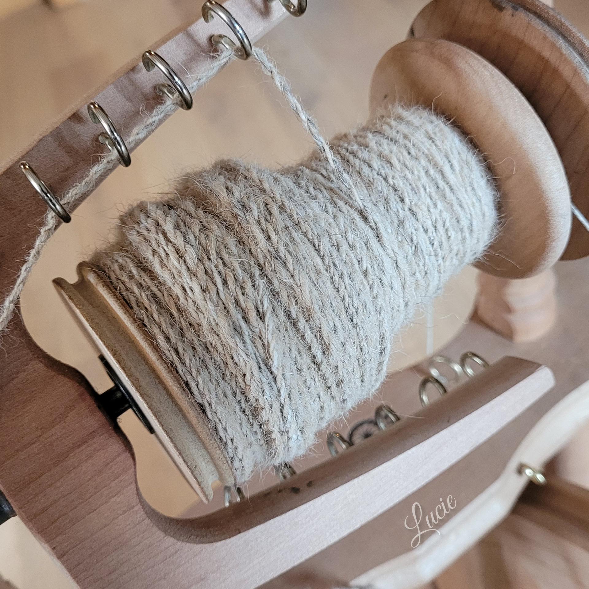 Son sous-poil étant assez court, je l'ai mélangé avec 20 % de laine de mérinos pour une meilleure accroche au filage. Le rendu de la laine est plus solide et moelleux.