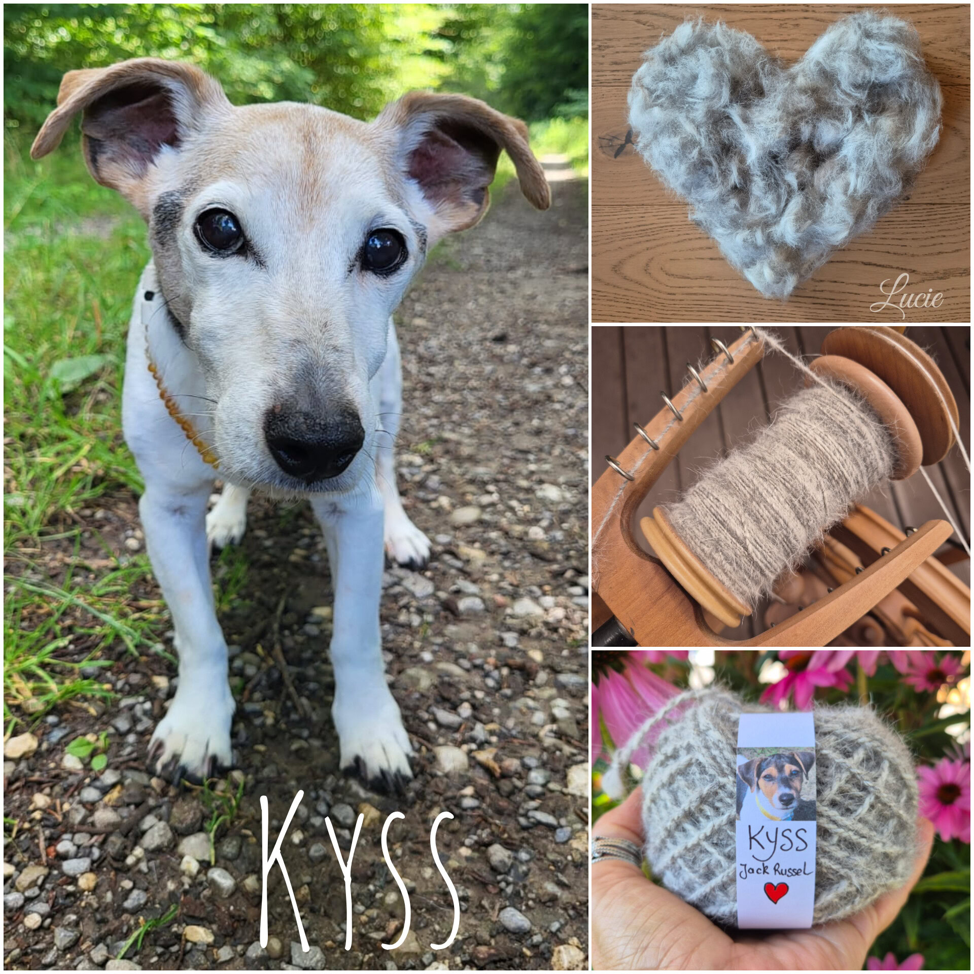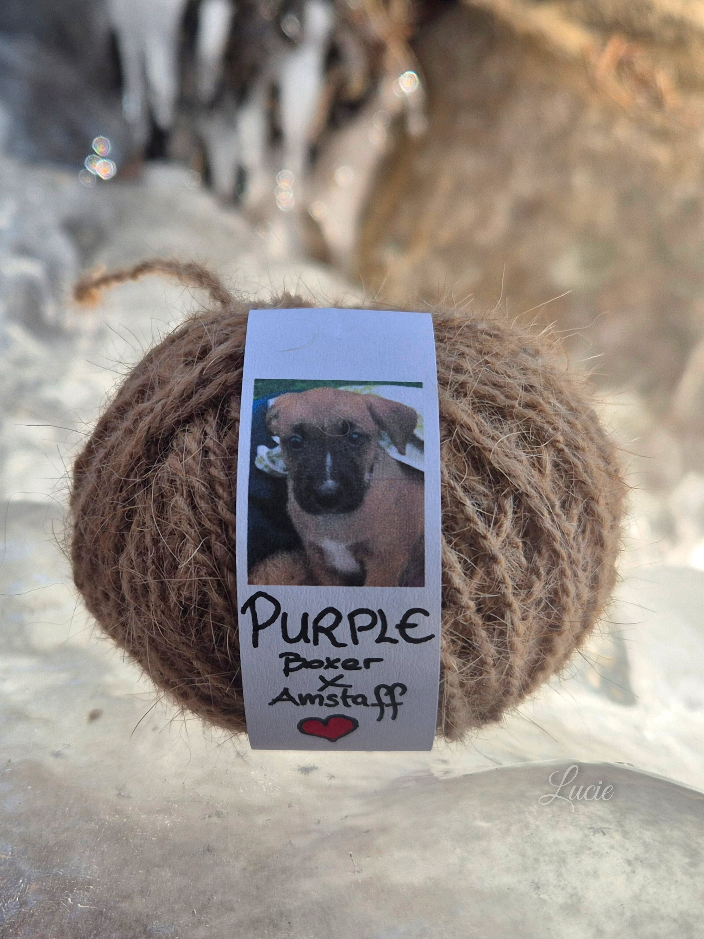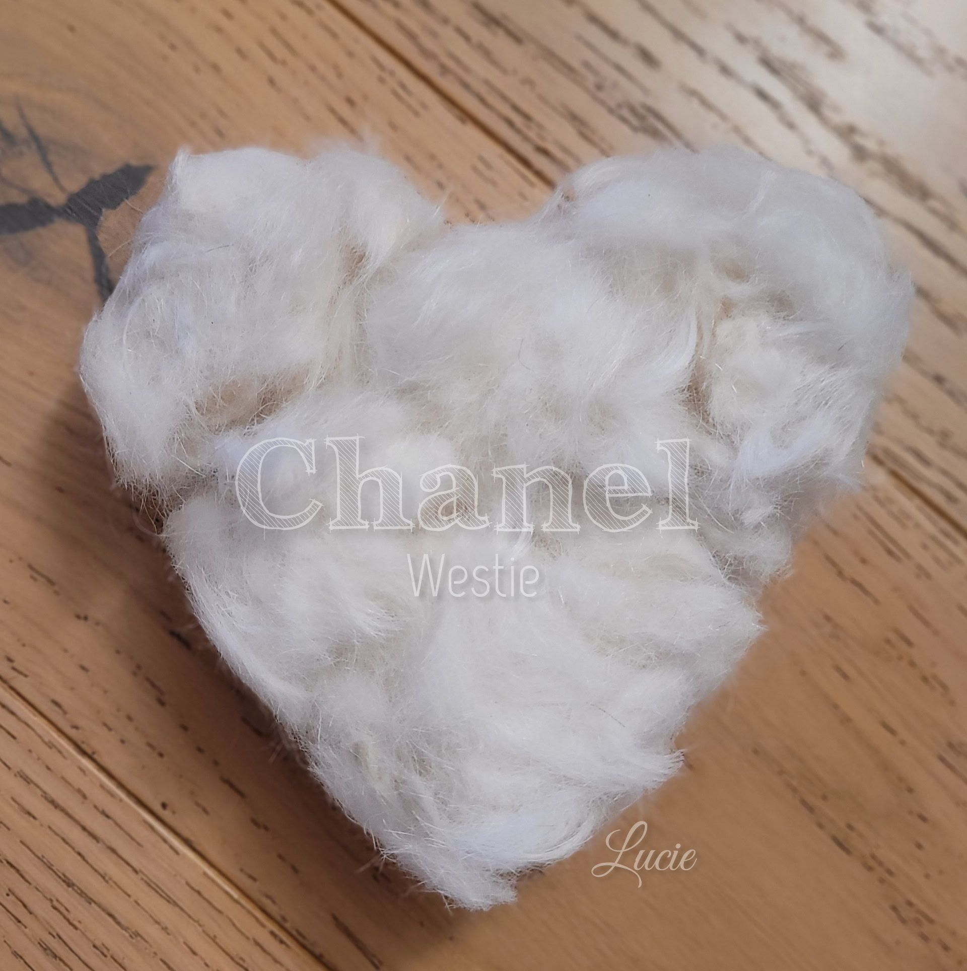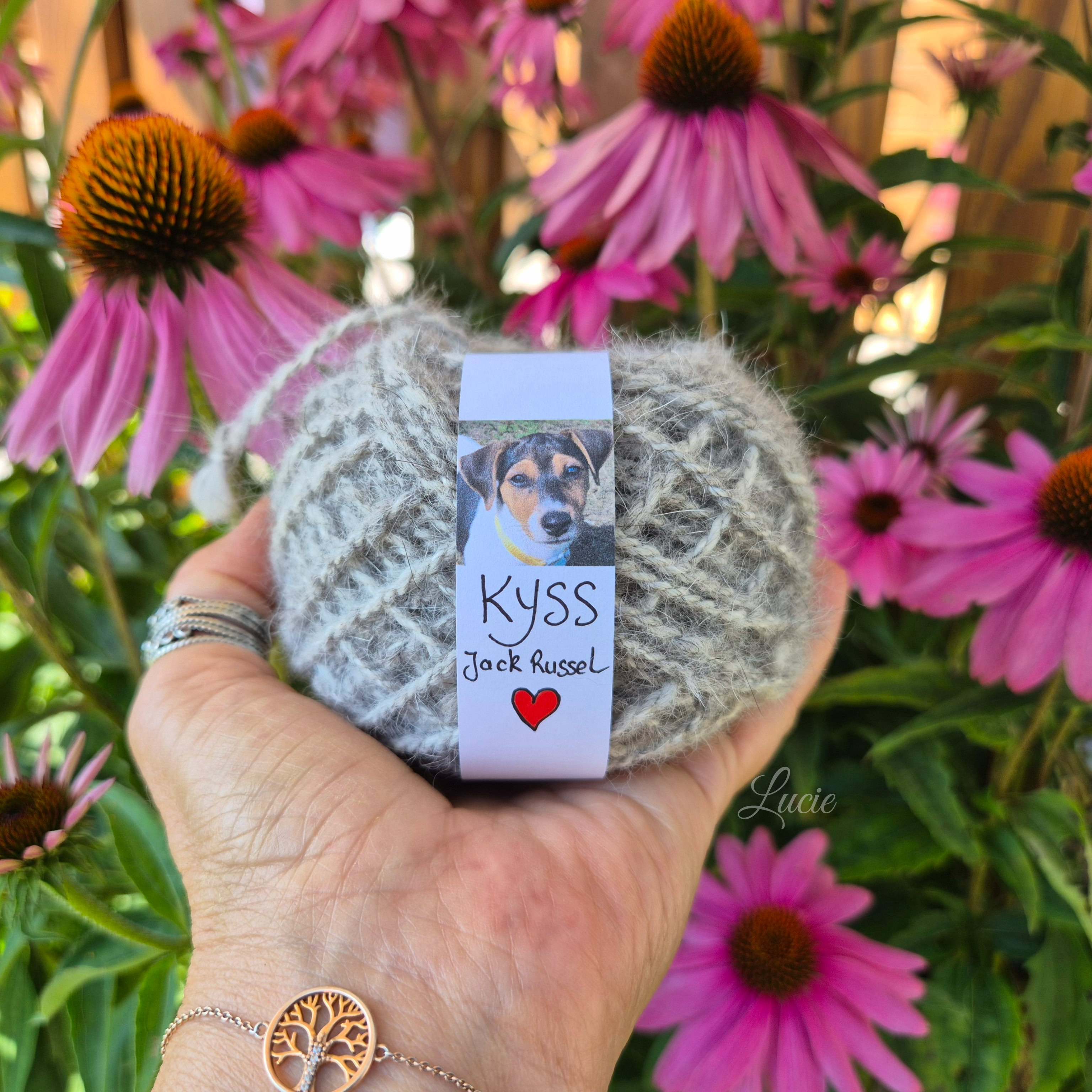 Toutes les races, ne possèdent pas ou peu ce précieux sésame, ils ont plutôt des "cheveux" qui, une fois coupés, produisent une laine rêche et piquante ayant tendance à feutrer. De plus, la tonte va entraîner une multitude de mini poils qui, lors du filage, volent dans tous les sens, j'en avais partout, dans le nez, la bouche, les oreilles... alouette. Je ne me suis pas découragée et ai filé 50g de poils tondus de Tippy, Shih Tzu et crocheter un petit coeur souvenir pour sa maîtresse.