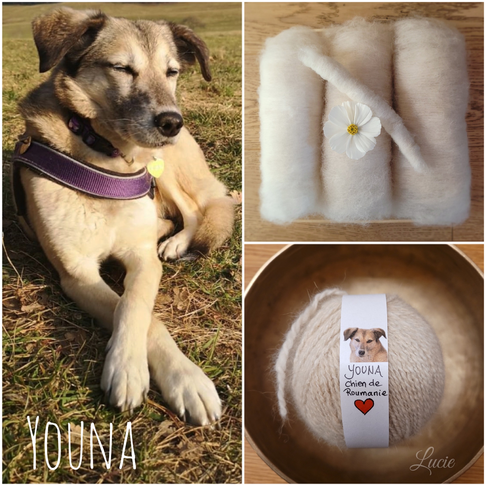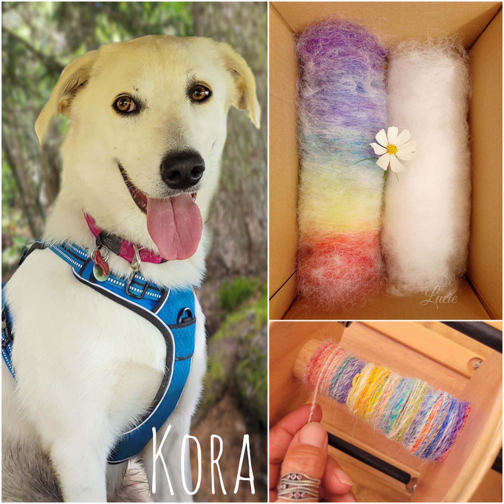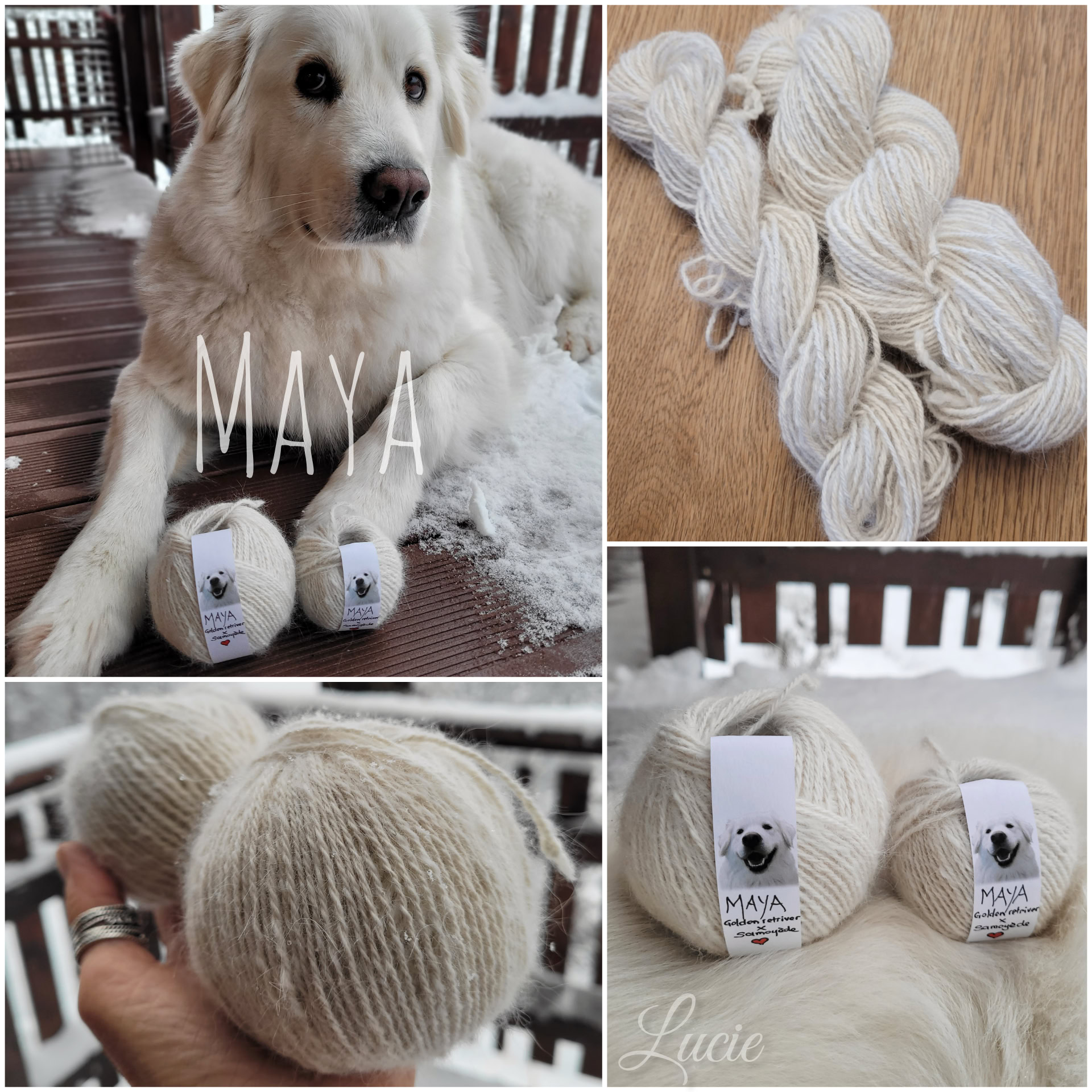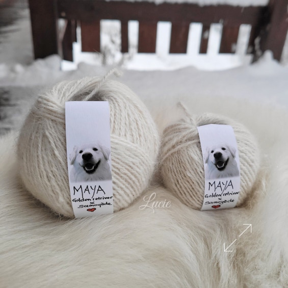 Ma petite Maya ❤, née en octobre 2018, est une Golden retriever croisée Samoyède. C’est grâce à elle que l’idée de filer du poil de chien m’est apparue.