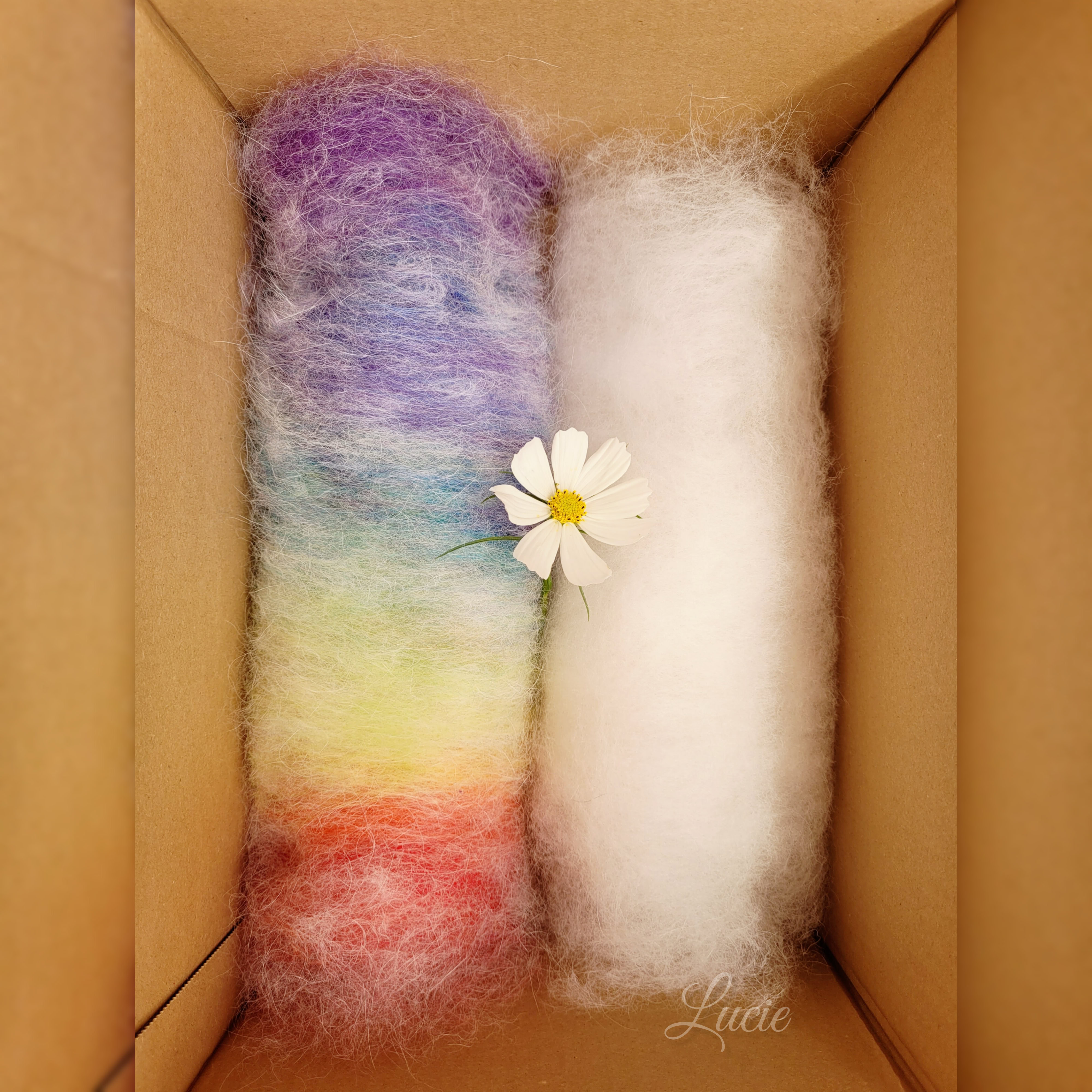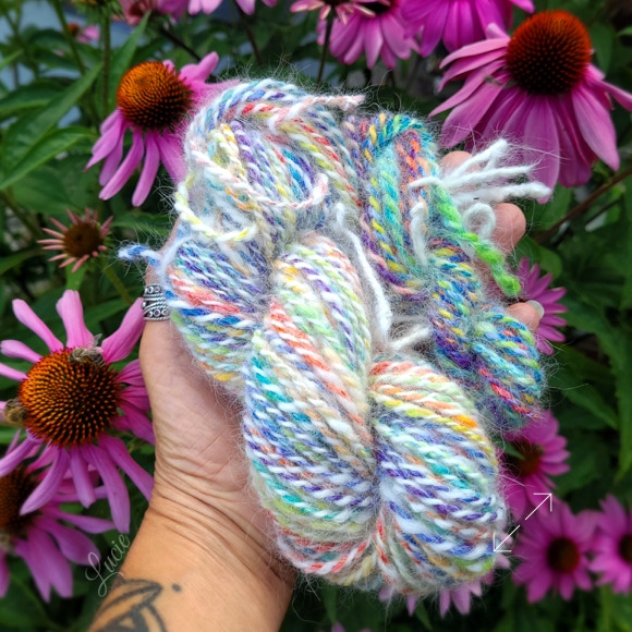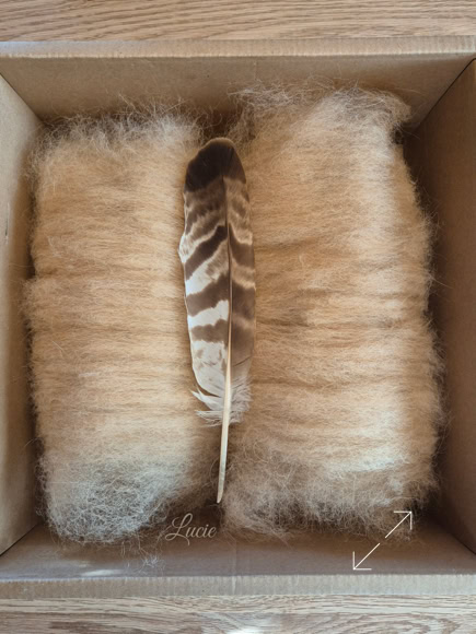 Pour une meilleure accroche et plus de souplesse, j'ai ajouté environ 20 % de laine de mérinos afin de faciliter le filage. 💙
