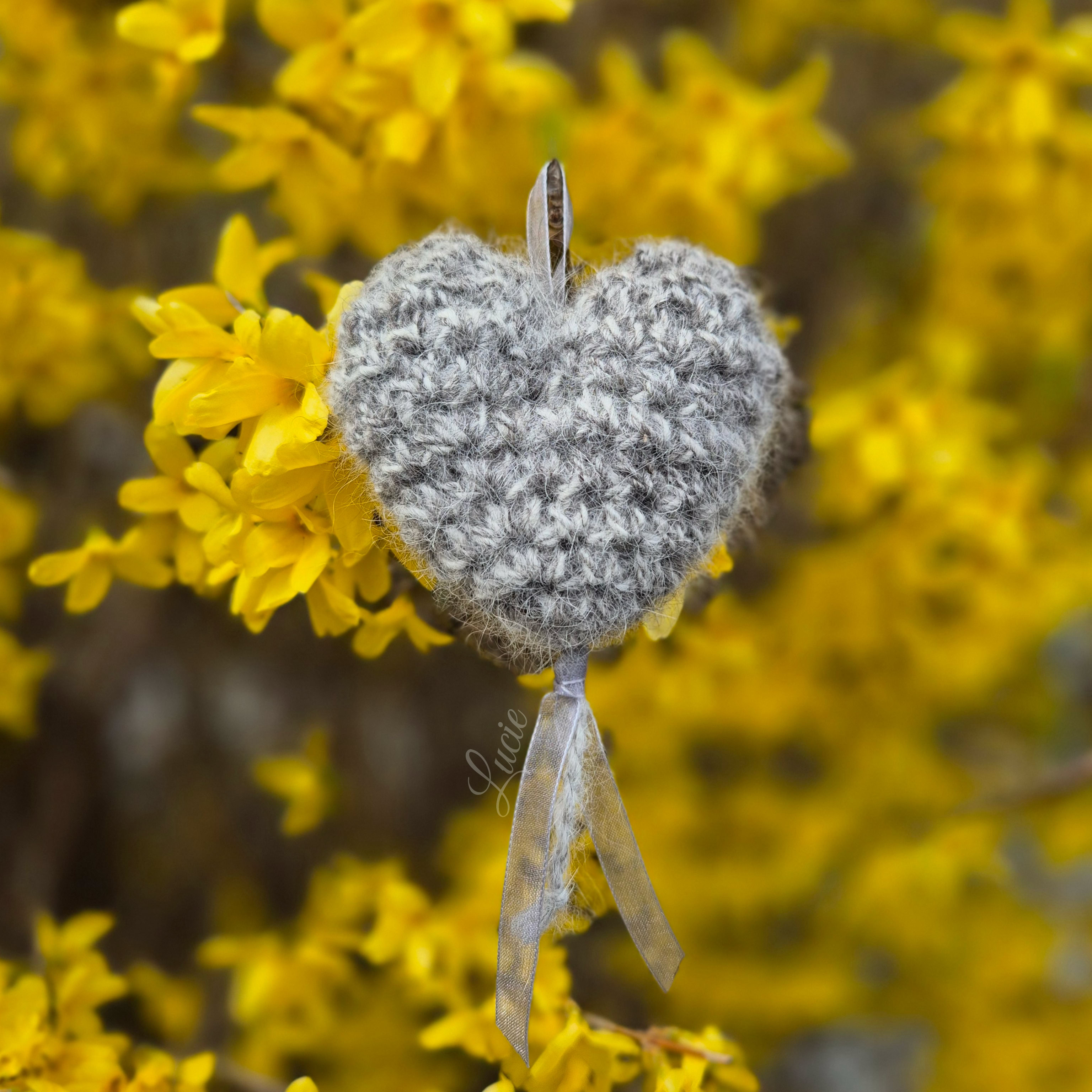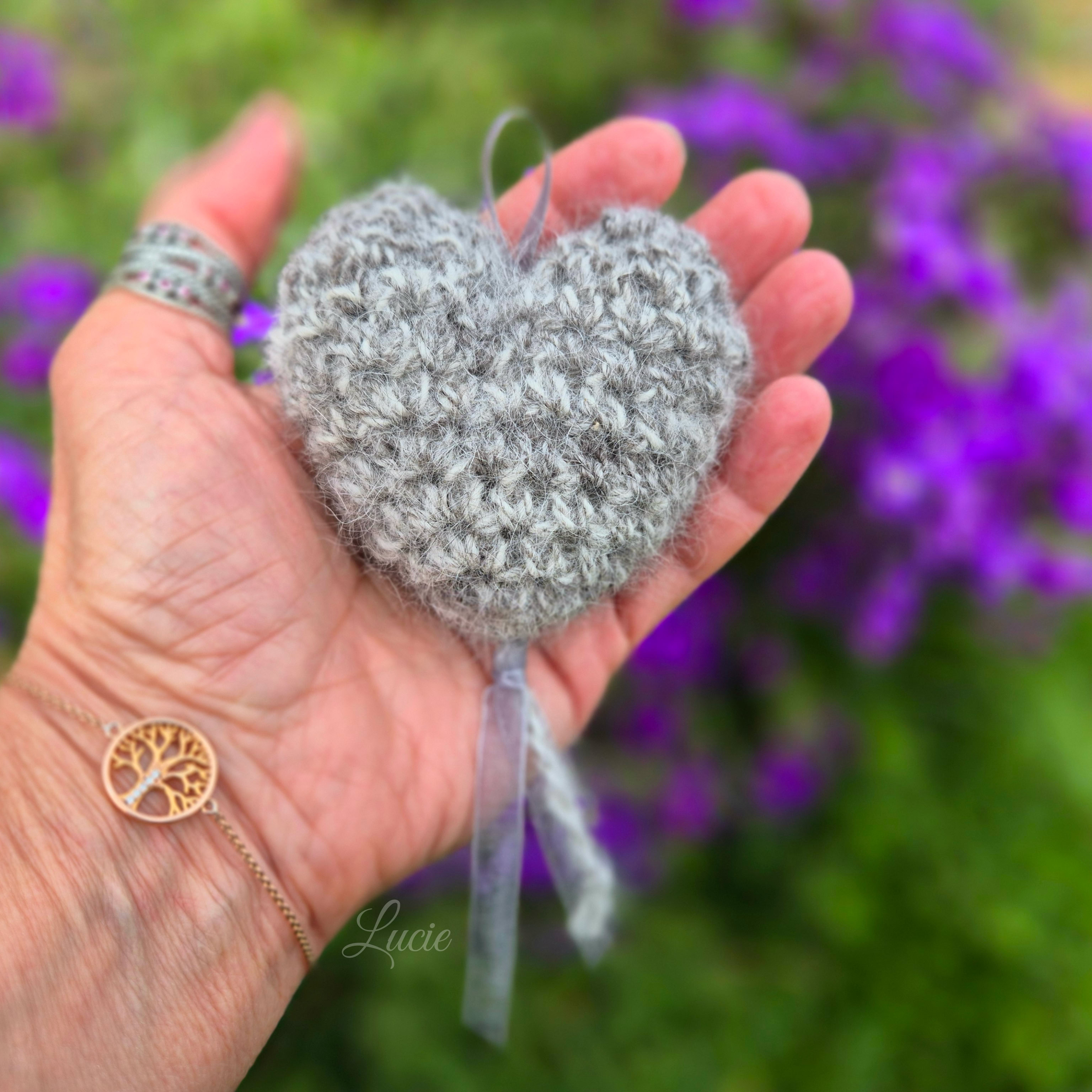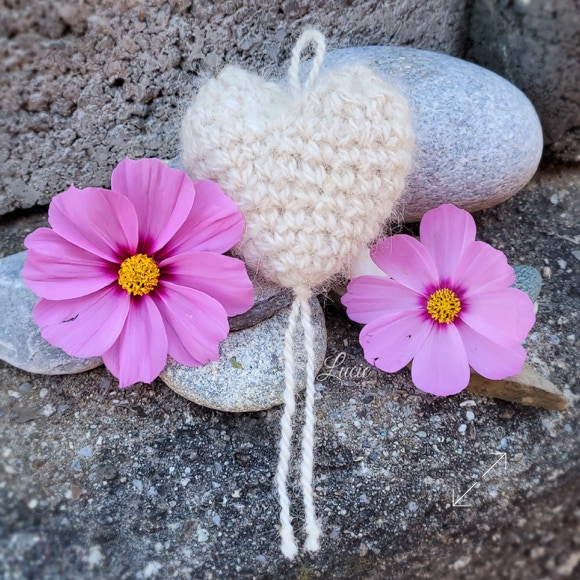 Un petit coeur rembourré avec la belle fourrure de Chanel, crocheté avec de la laine de Maya 🐾