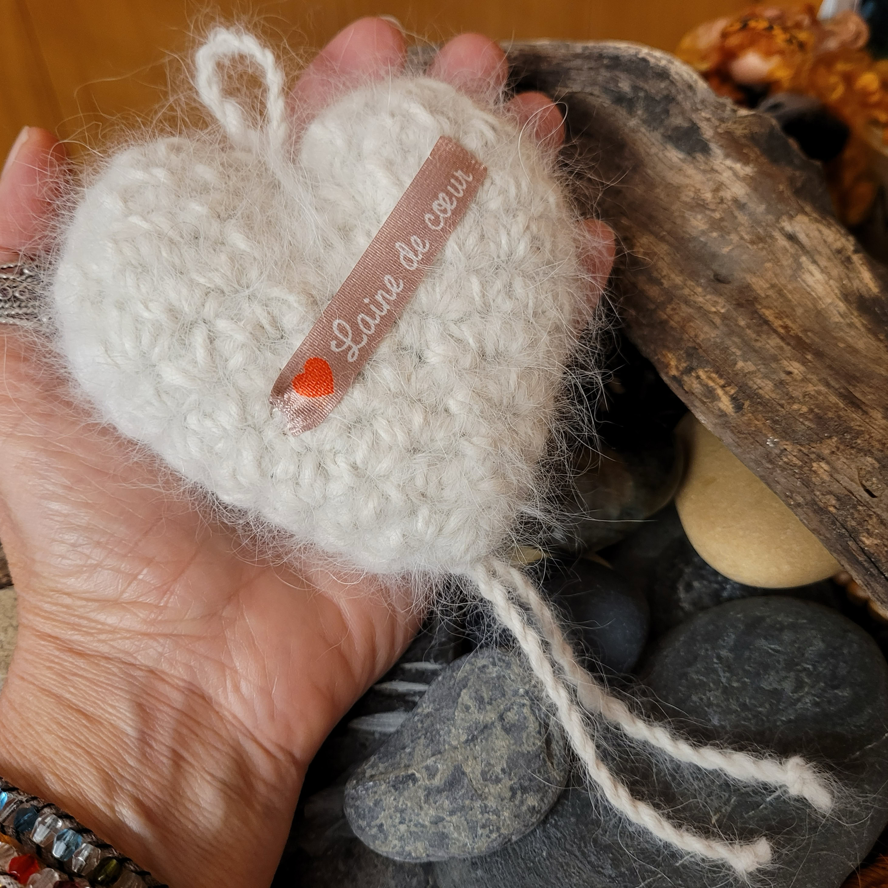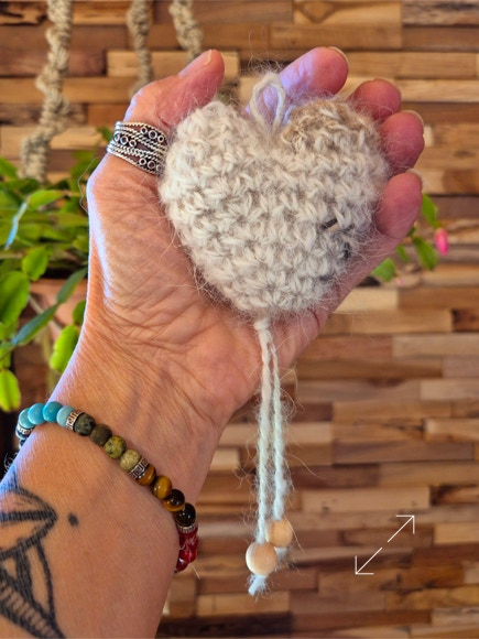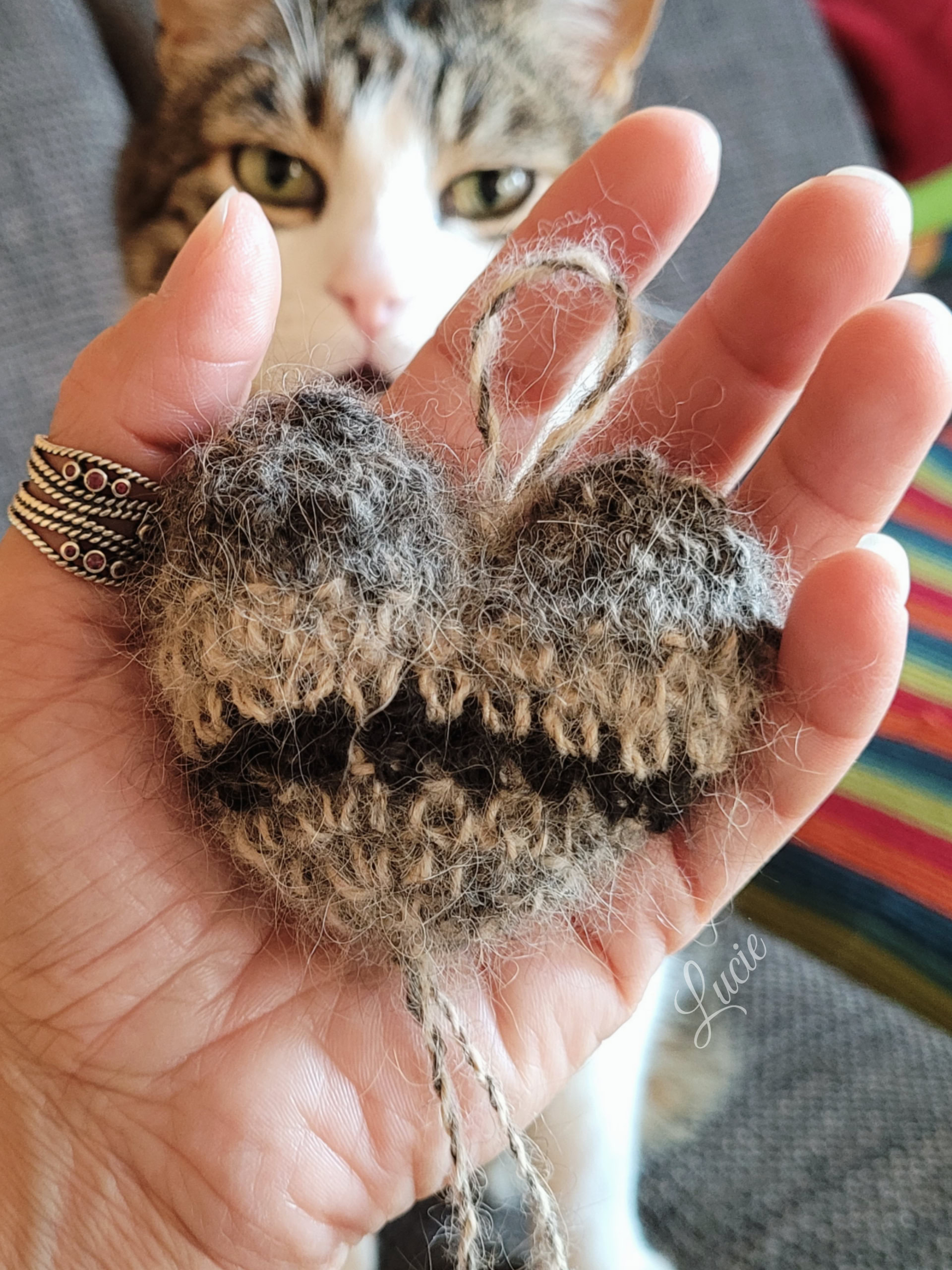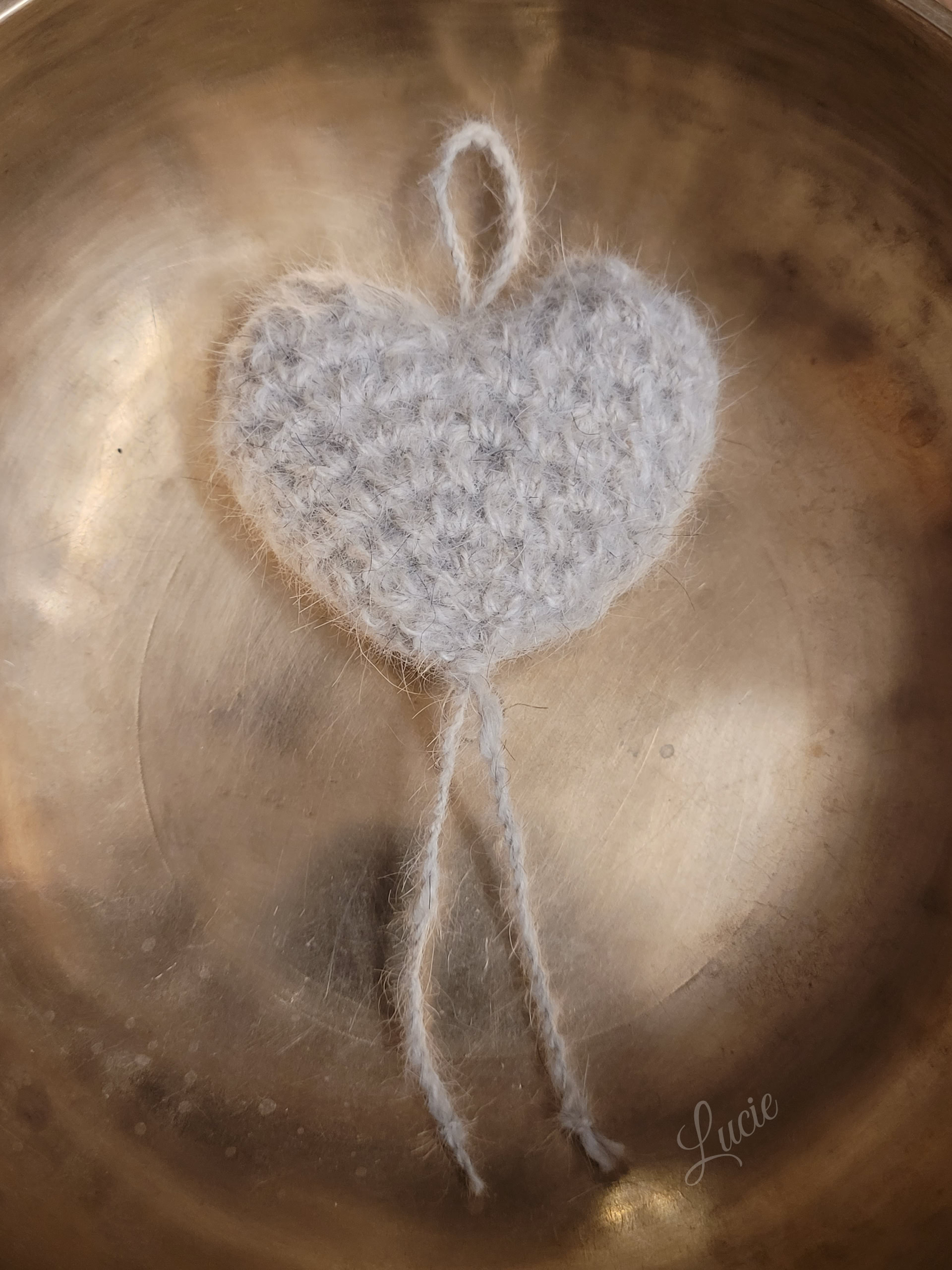Un petit coeur rembourré avec la belle fourrure de Chanel, crocheté avec de la laine de Maya 🐾