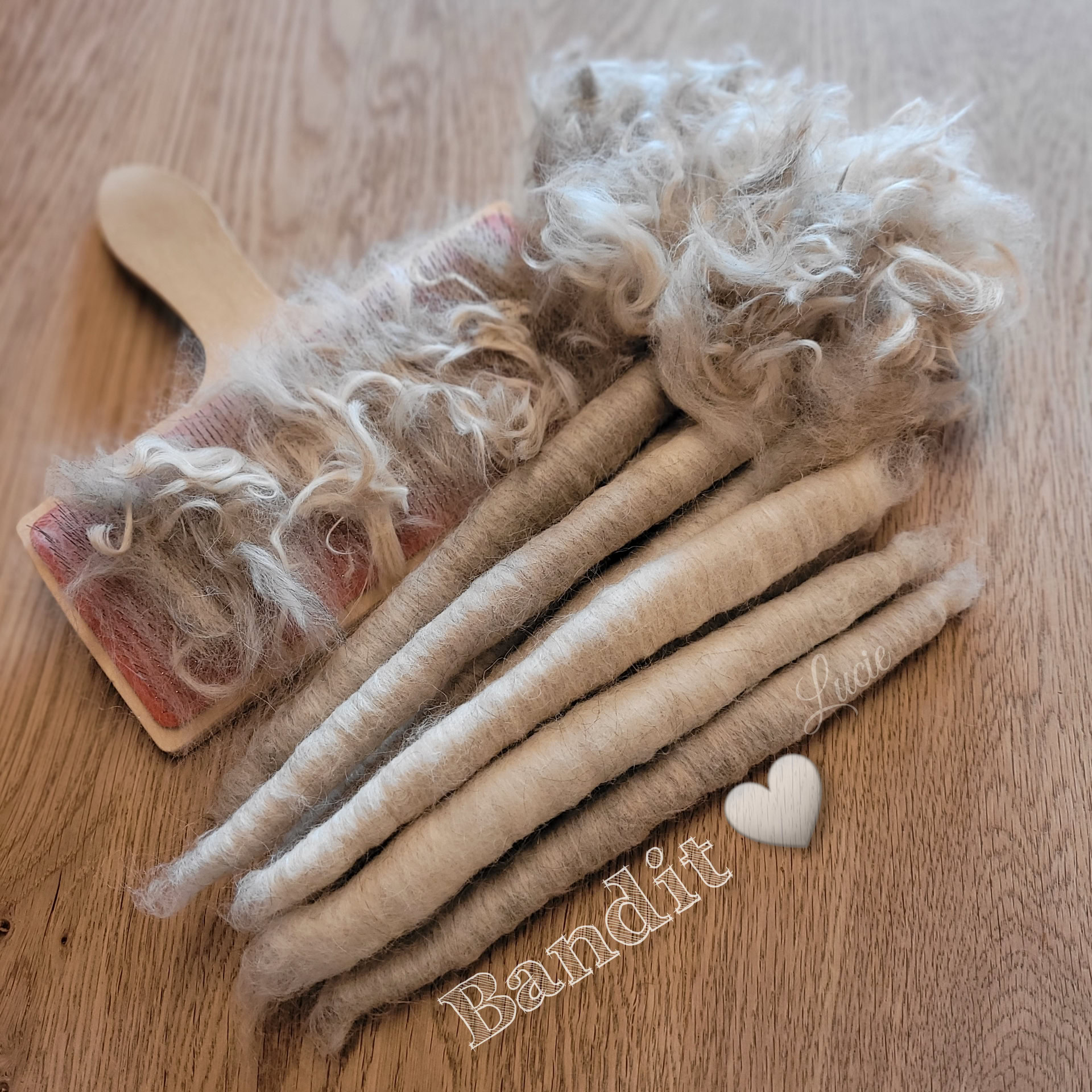 J'ai pu réaliser cette pelote grâce à sa toiletteuse qui a pris soin de bien séparer les mèches plus longues du reste de la coupe.