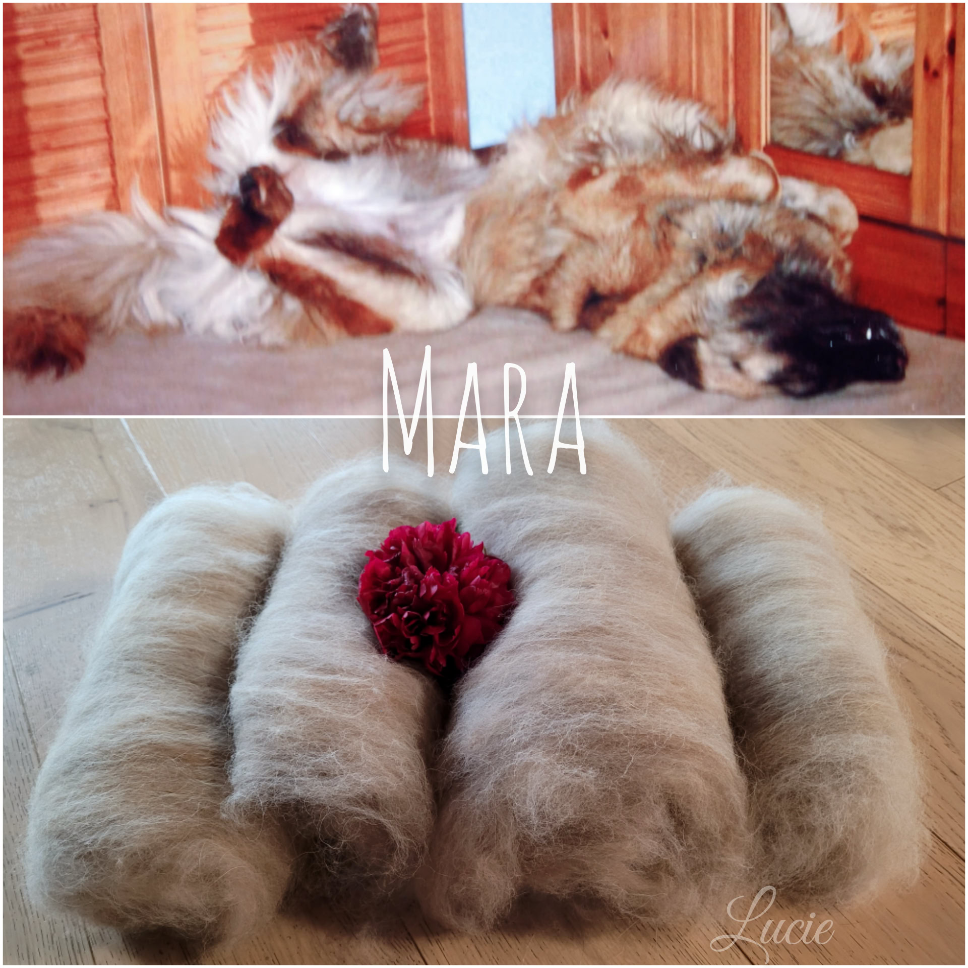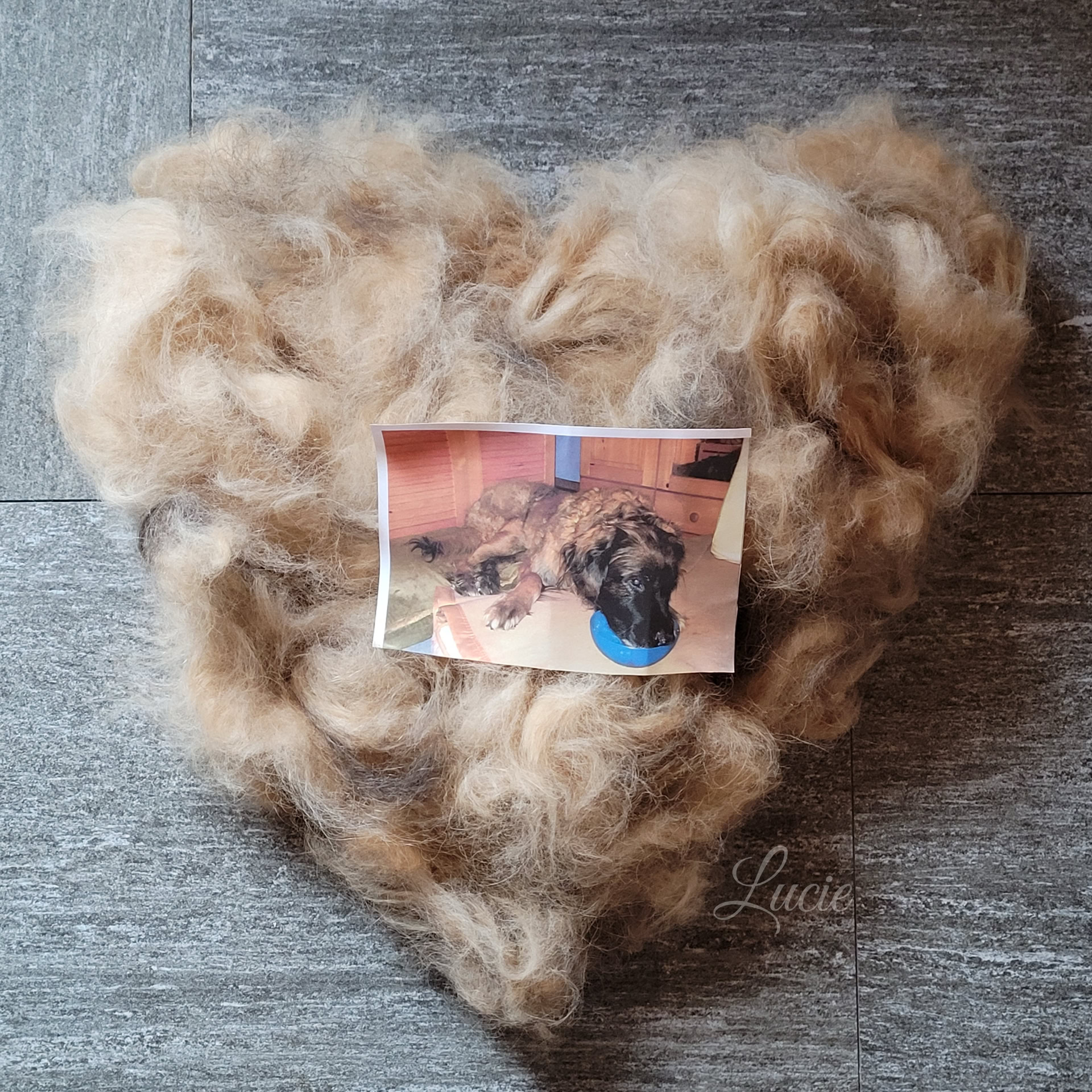 Thérèse a conservé durant plusieurs années le sous-poil de ses deux belles Léonberg aujourd'hui disparues, en espérant le faire filer un jour. Son rêve devient réalité.
